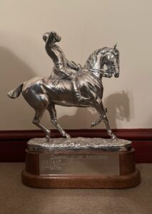 The first modern show, actually Aylsham Fete and Gymkhana was held on the “Rec” on June 10, 1946, under the leadership of Ray Bond (a fine solid silver Huntsman on Horseback Cup was donated in his memory, and on the plinth we now put the name of the Show Chairman – see photos below). 558 visitors, including 198 children, helped to raise £118 12s 3d towards play equipment that Whit Monday. Insurance for third party risks cost 15s or 75p! But funds were made for charity – and over one million pounds has since been raised over the following decades.